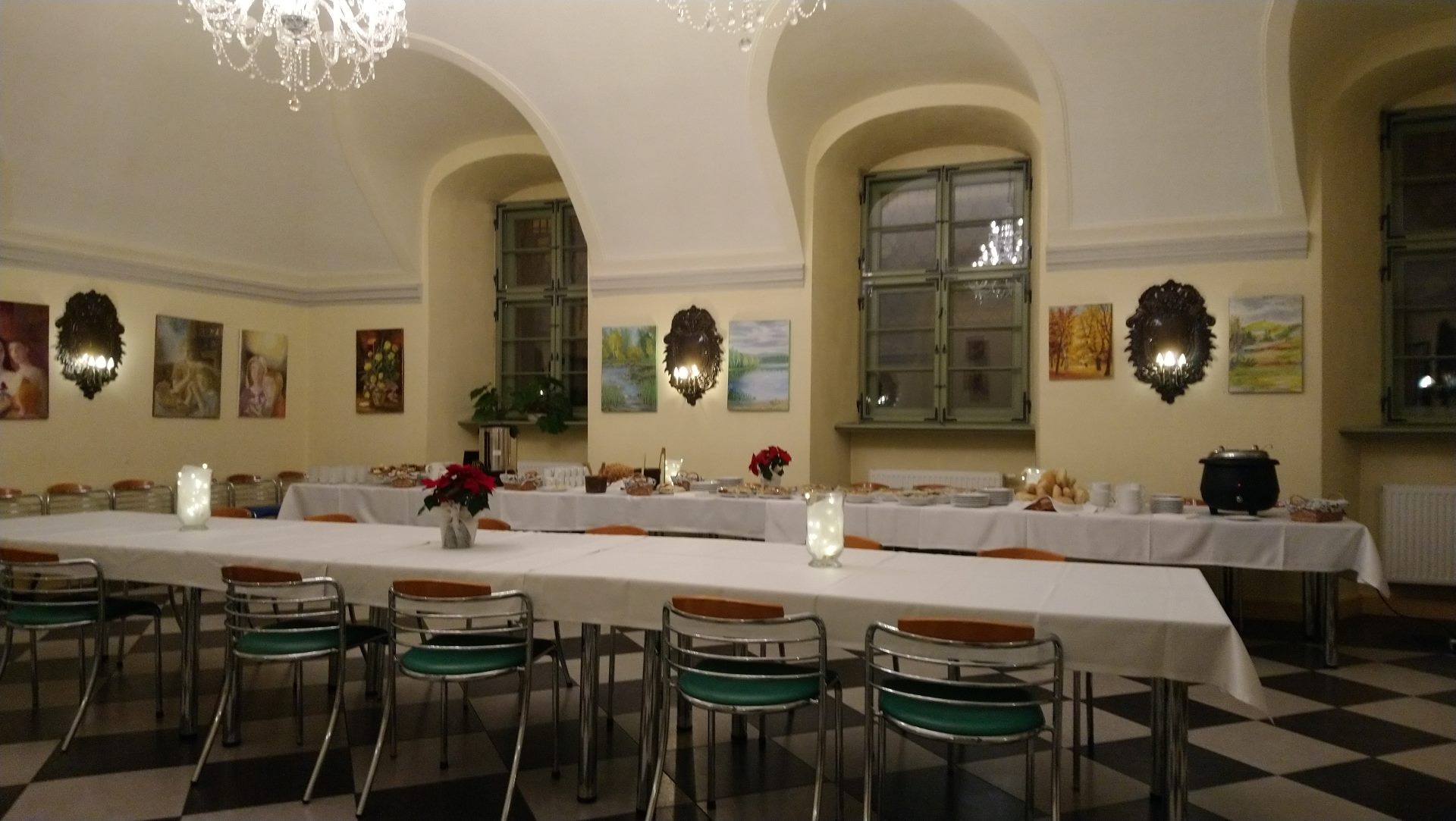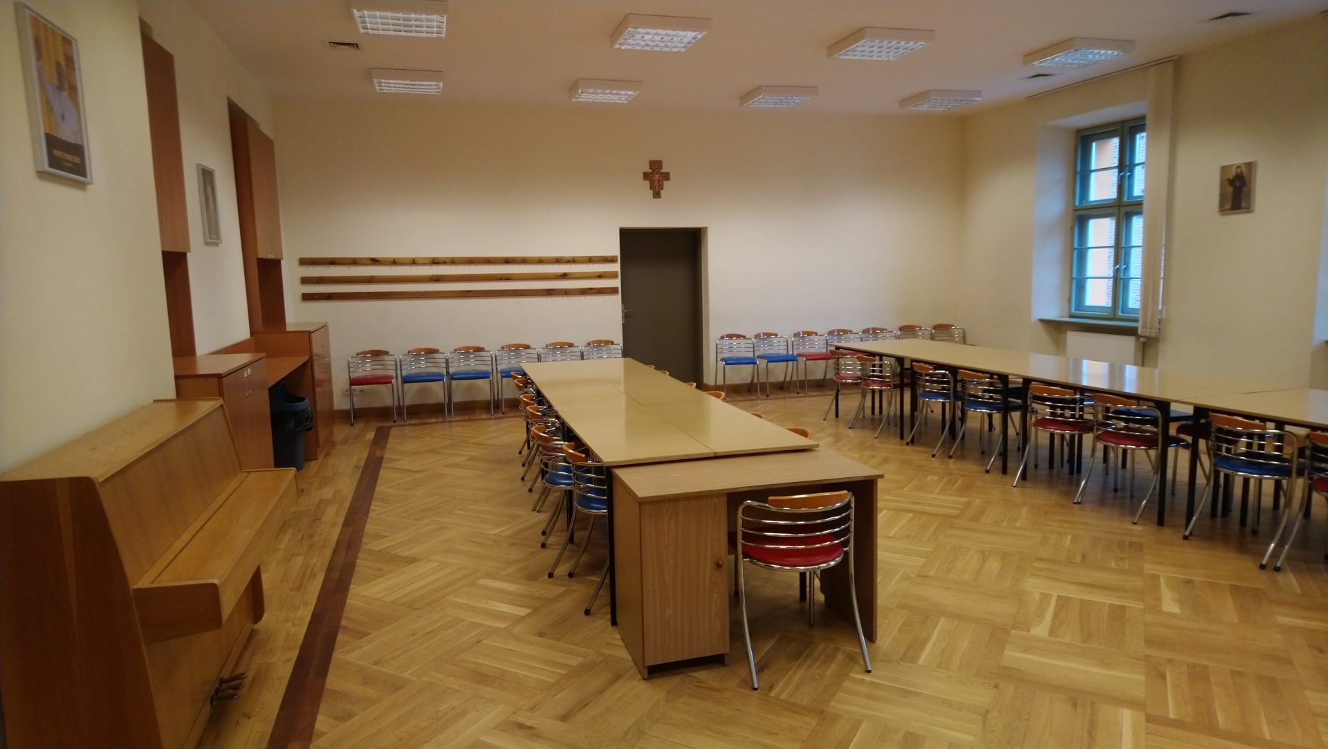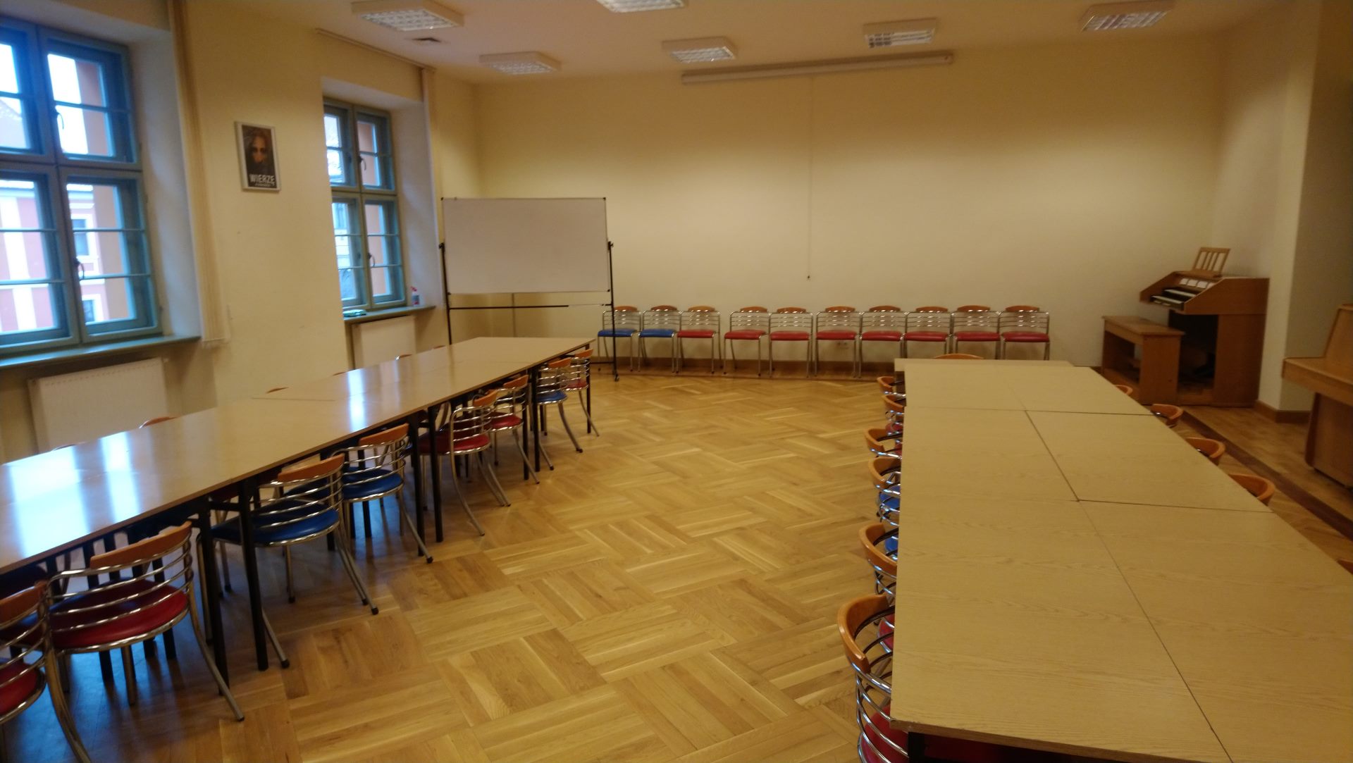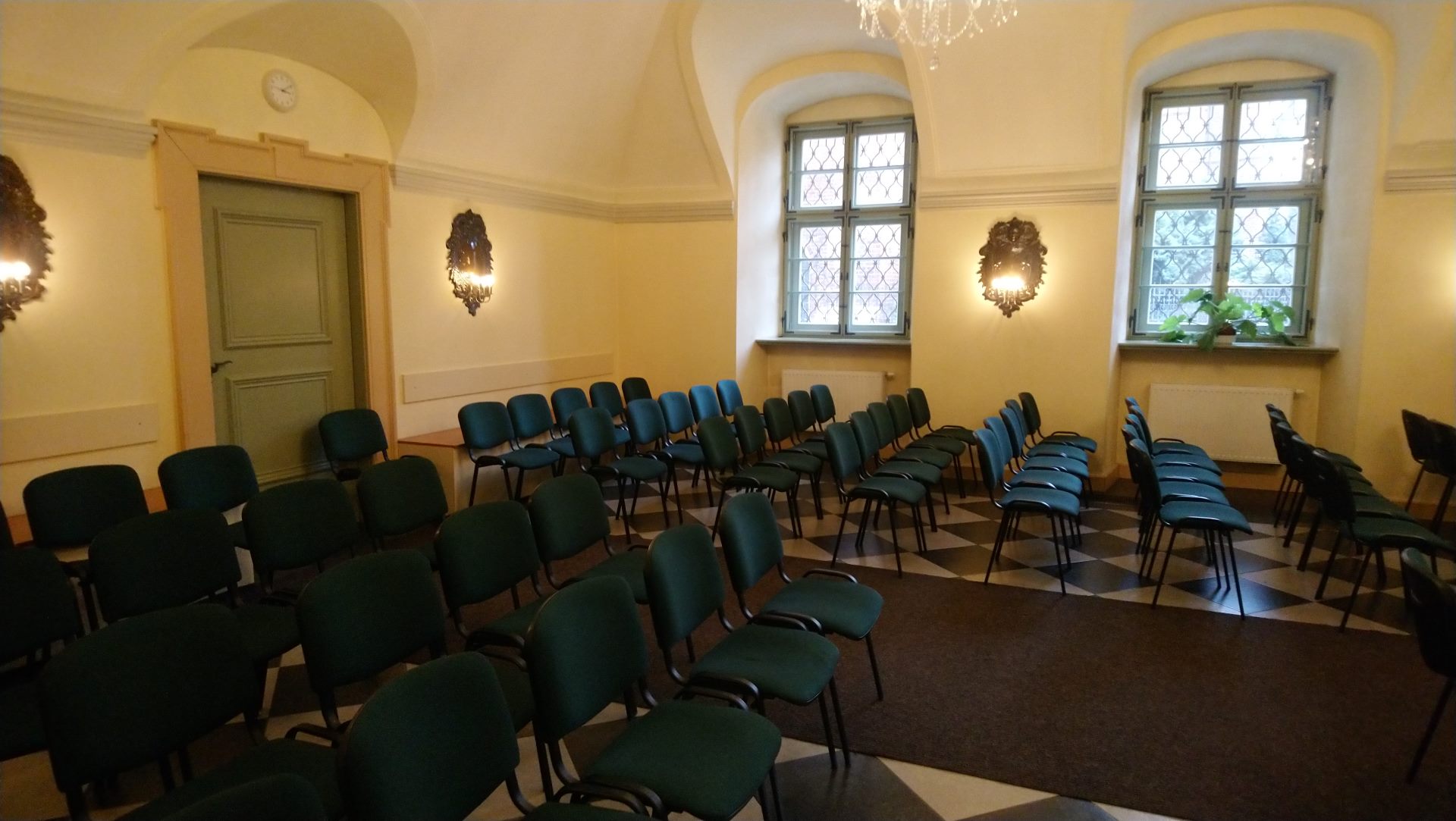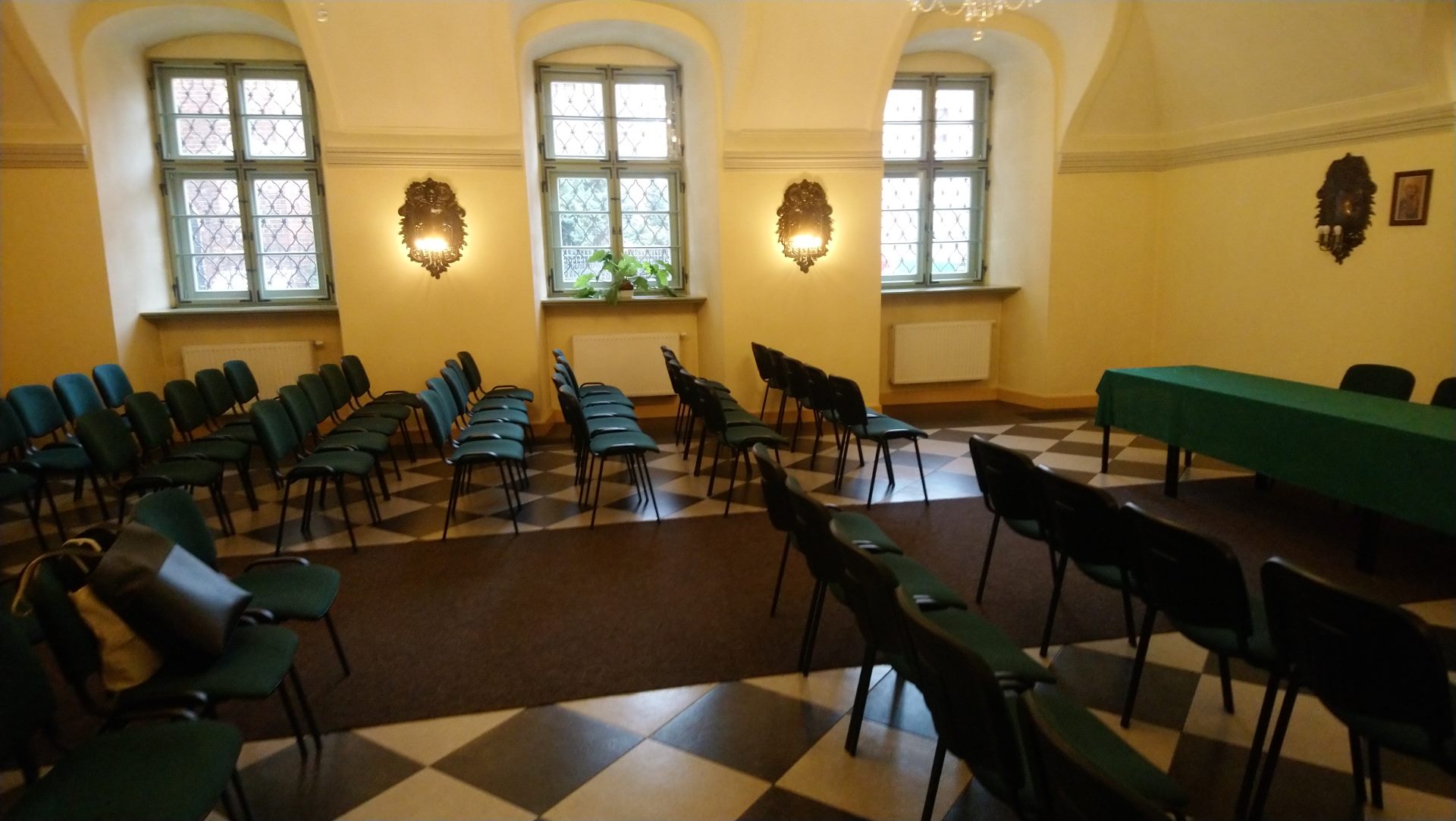 Dysponujemy czterema salami, każda o powierzchni 80 m2. Pomieszczenia wyposażone są w sieć wi fi, ekrany, w tym multimedialne. Na miejscu dostępny jest rzutnik. Sale znajdujące się na parterze obiektu to klimatyczne wnętrza, w których zachowano ich pierwotny, barokowy charakter. W porze wiosennej i letniej miejsce to nabiera dodatkowego uroku, gdyż nasz oferta poszerzona jest o możliwość wykorzystania zielonego patio na dziedzińcu obiektu.